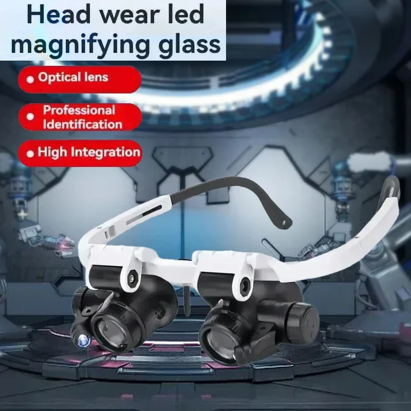 4.LED light auxiliary lighting,Retractable glasses stand, adjustable nose frame.