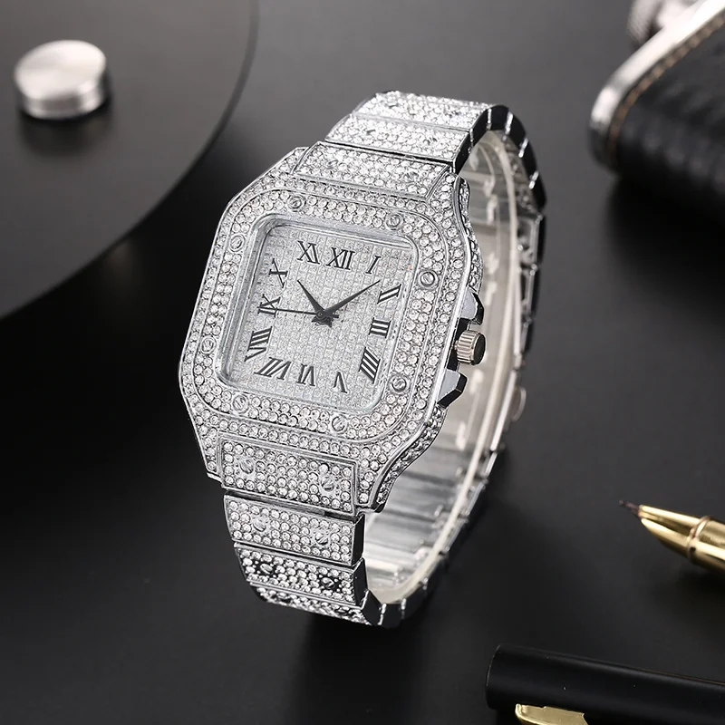 Men’s Fashion Elegant High-End Analog Zinc Alloy Watch With Rhinestones