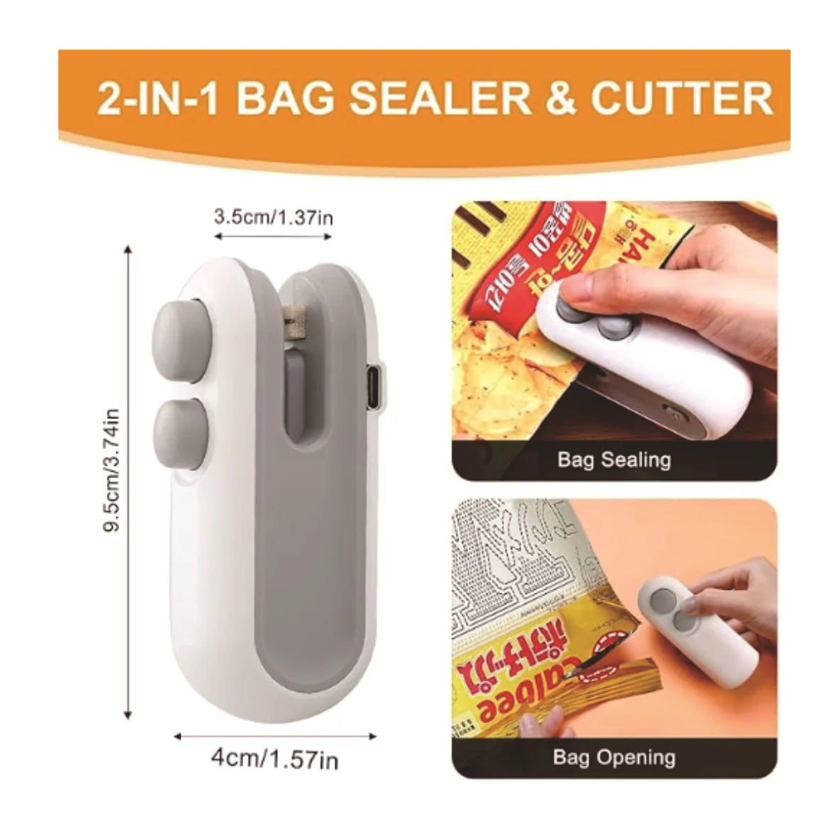 Mini Bag Sealer : Designed for convenience on-the-go, our high-quality mini 2-in-1 sealer and cutter are handheld and portable. Perfect for travel, camping, or hiking, this compact device is a versatile companion for sealing and cutting bags effortlessly. Don't leave home without it!
