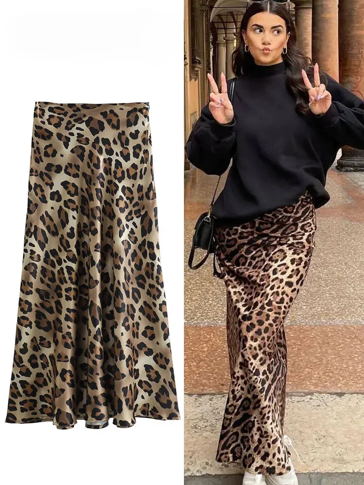 Mooyufon 2024 Women Fashion Leopard Print Skirt Vintage High Waist Midi Skirts Elegant Women Summer Casual Streetwear Skirt