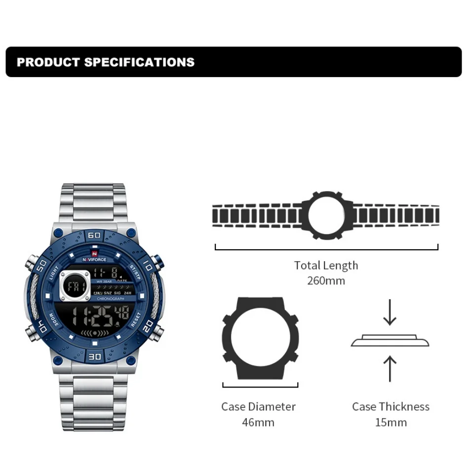 Feature: Led Display,Chronograph,Complete Calendar,Alarm,Week Display