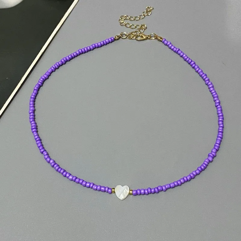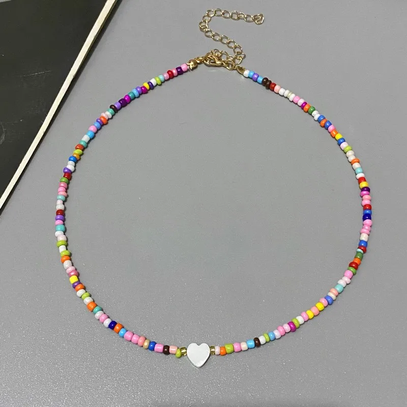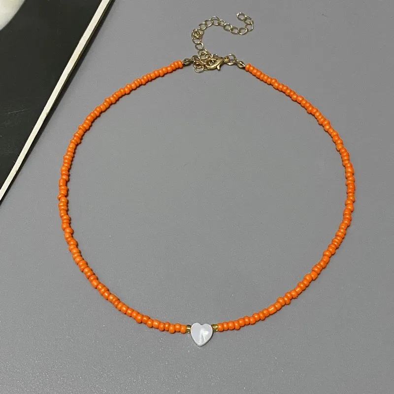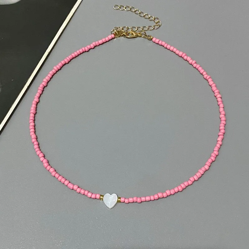 New Nature Shell Love Heart Choker Necklace for Girl Spring Summer Fashion Small Colorful Glass Beads Necklace Gift for Friend