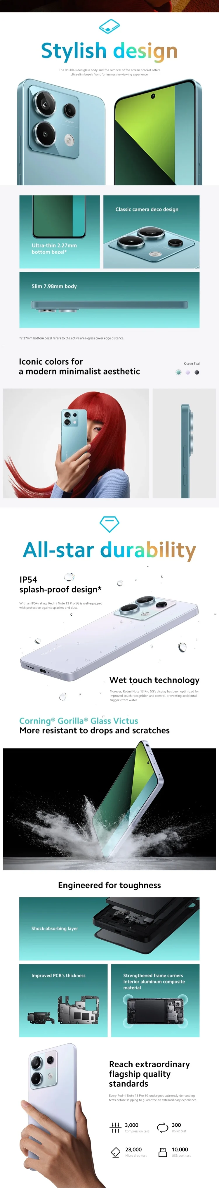 New Xiaomi Redmi Note 13 Pro 5G Smartphone 128GB/256GB ROM 200MP OIS Camera Snapdragon 7s Gen 2 67W Turbo Charging 6.67″ AMOLED