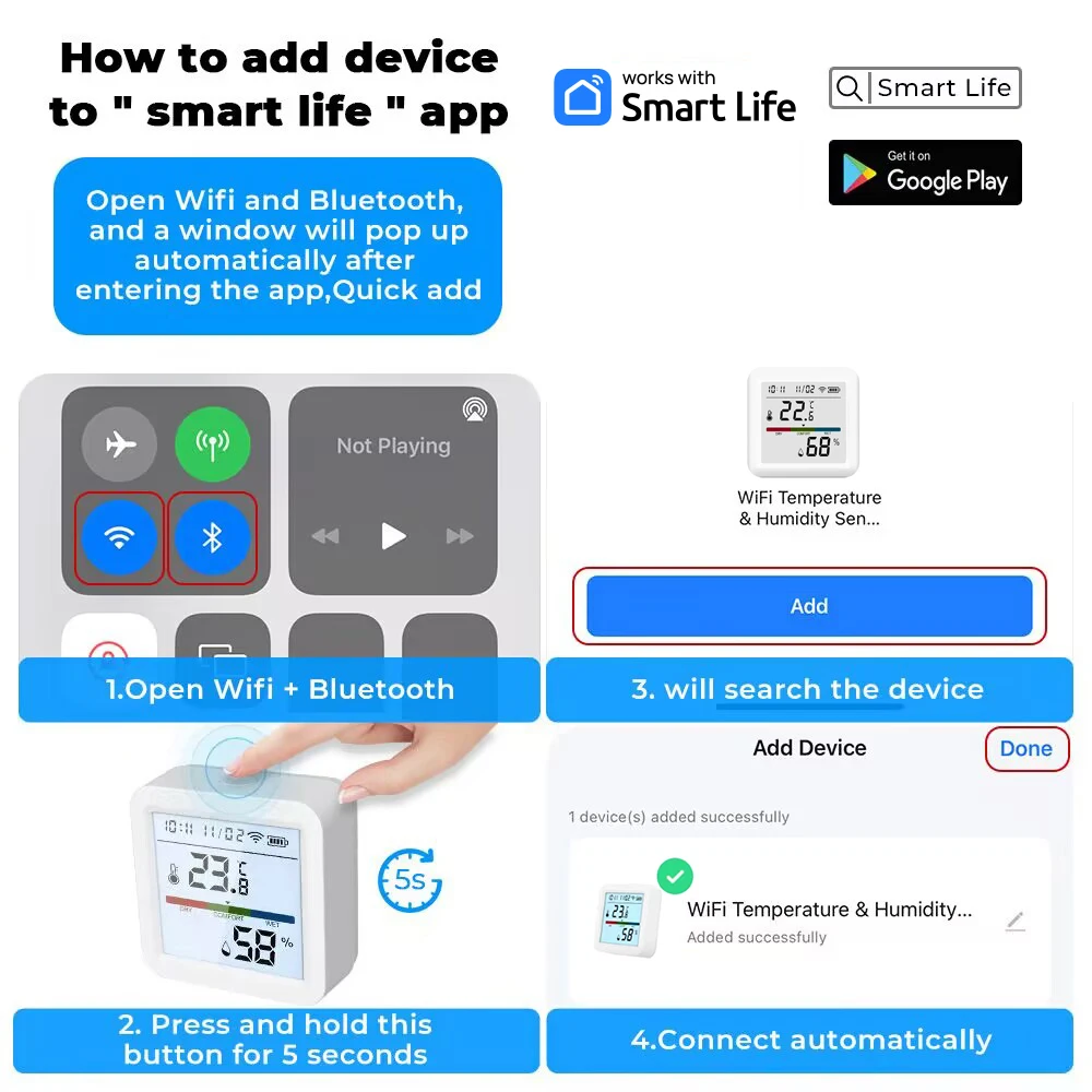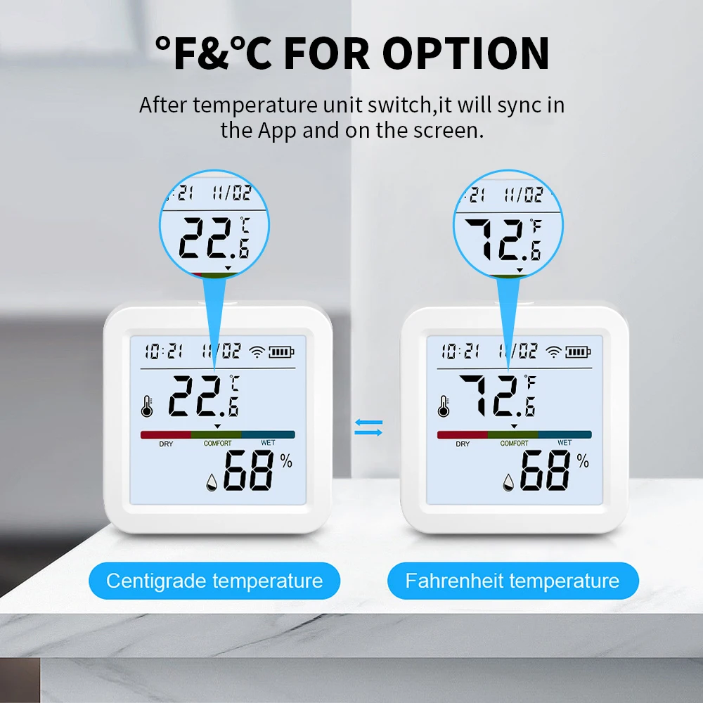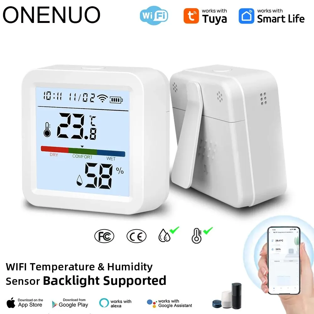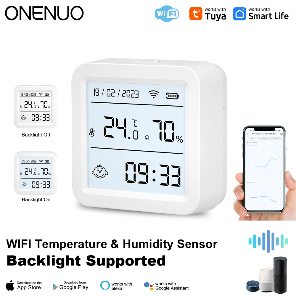 ONENUO Tuya WIFI Temperature Humidity Sensor Hygrometer Thermometer Smart Home Backlight Smart Life Support Alexa Assistant