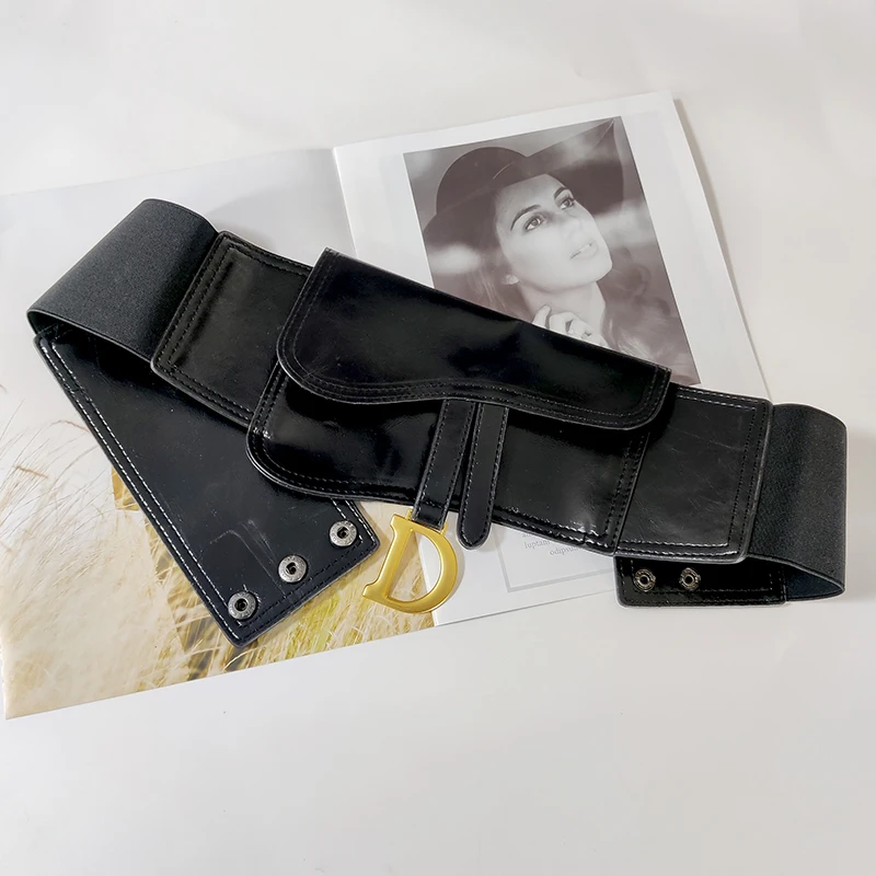Plus Size Luxury Belts For Women Elastic Wide Corset Belt Female Waist Big Stretch Cummerbunds D Letter Coat Dress Waistband