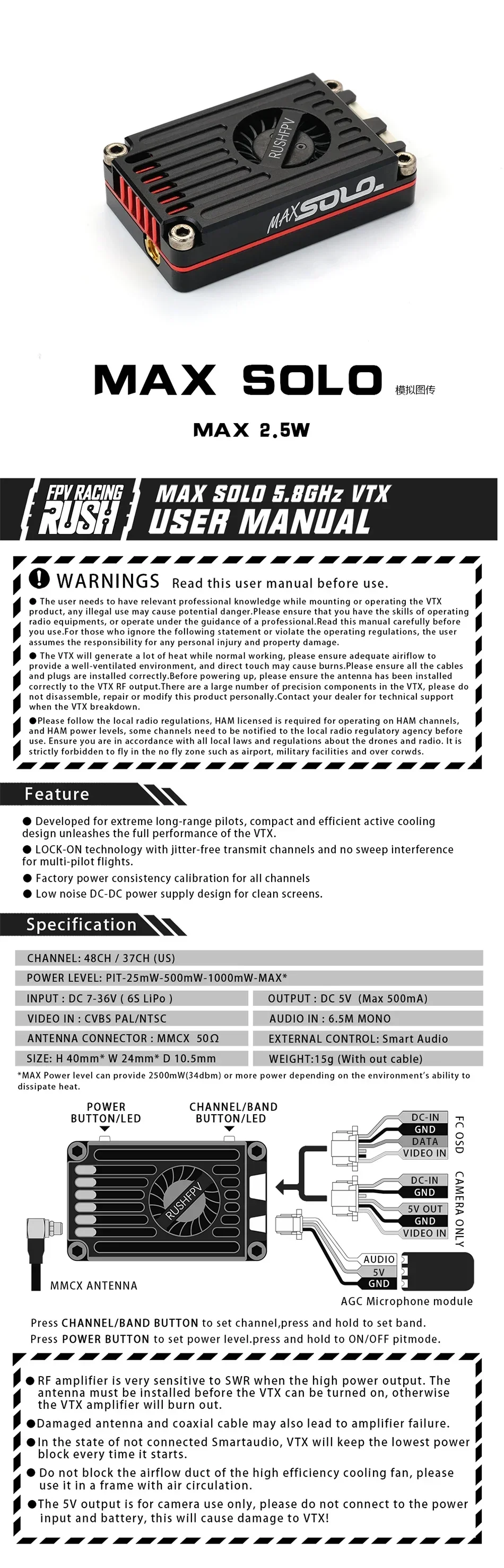 RUSHFPV MAX SOLO 2.5W VTX Video Transmitter
