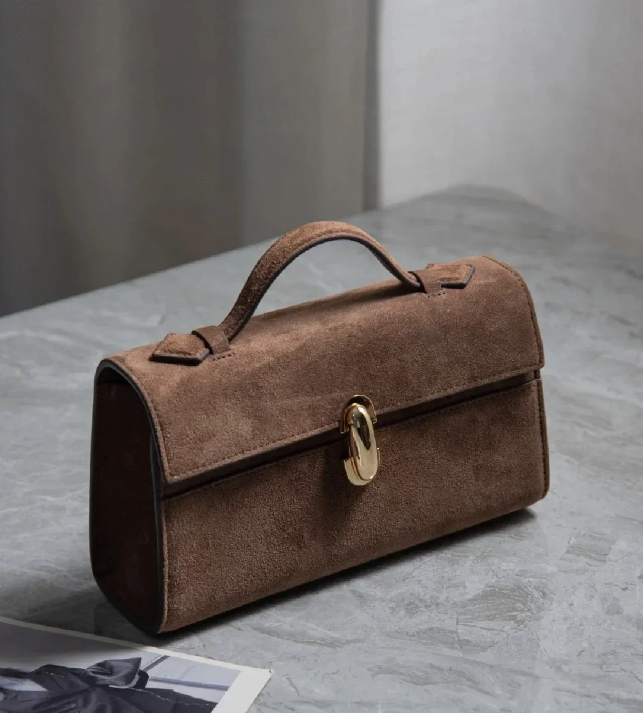 2: Women’s Suede Solid Color Simple Handbag Small Square Row Bag