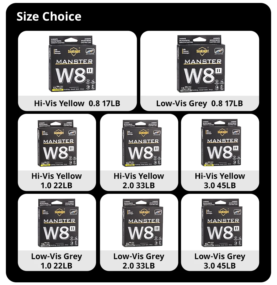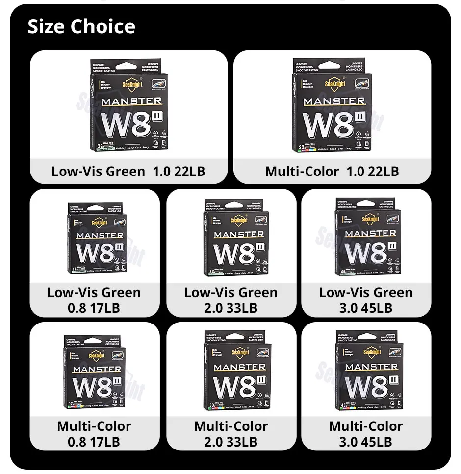 • Advanced Wide Angle Technology :The SeaKnight Brand W8 II Series 8 Strands Fishing Line features an advanced wide angle technology, allowing for longer casts and improved accuracy.