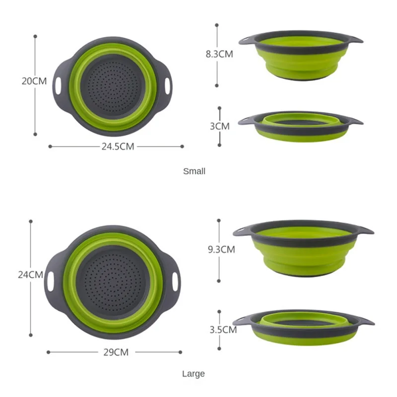 Silicone Round Folding Drain Basket Fruits Vegetable Washing Basket Strainer Colander Collapsible Drainer Kitchen Storage Tool