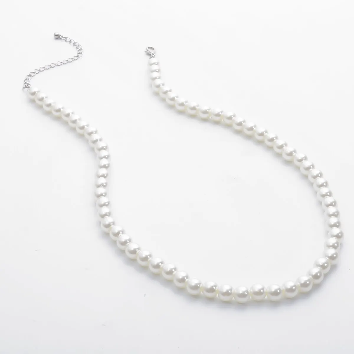 Simple Imitation-Pearl Beaded Short Choker Necklace for Men Trendy White Beaded Chains on Neck Accessories 2023 Fashion Jewelry