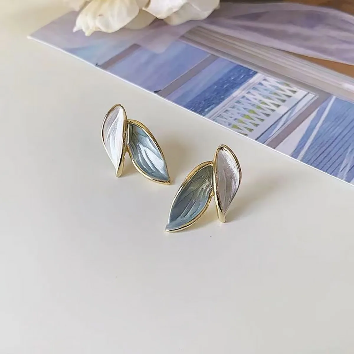 Simple Retro Blue White Leaf Earrings Retro High End Design Earrings Forest Style Fashionable Earring Light Colors Elegant Women