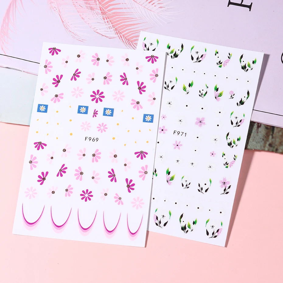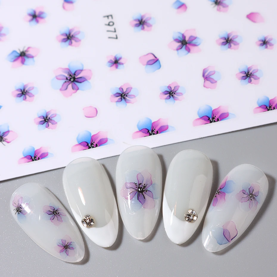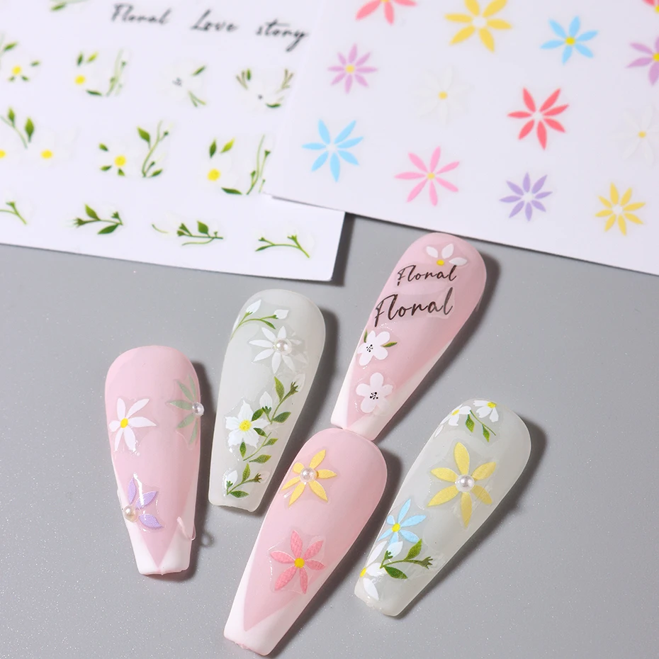 Simple Flowers 3D Nail Stickers Spring Summer Blossom Floral Tulip Fruit Nail Art Decals Adhesive Sliders Manicure Decorations