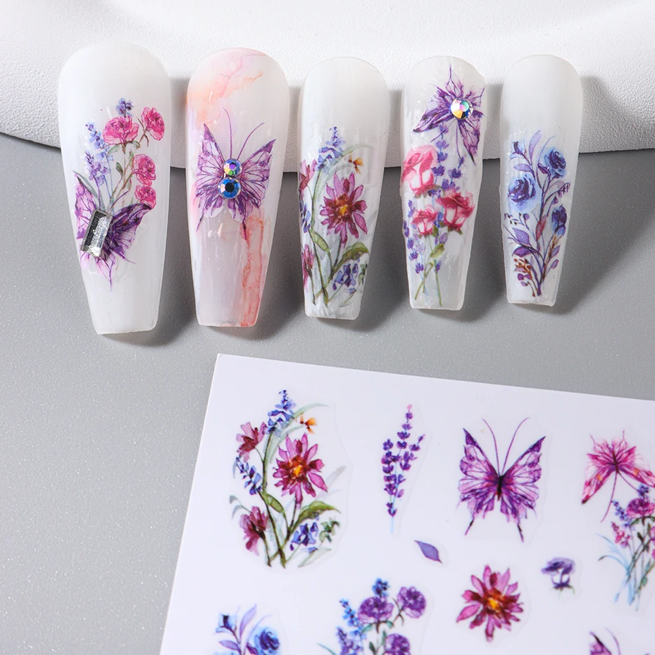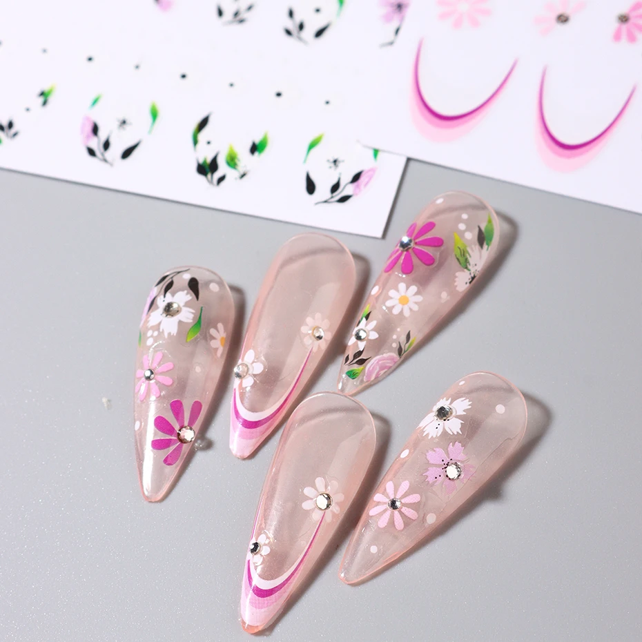 Spring Flowers 3D Nail Stickers Simple Summer Blossom Floral Tulip Fruit Nail Art Decals Adhesive Sliders Manicure Decorations