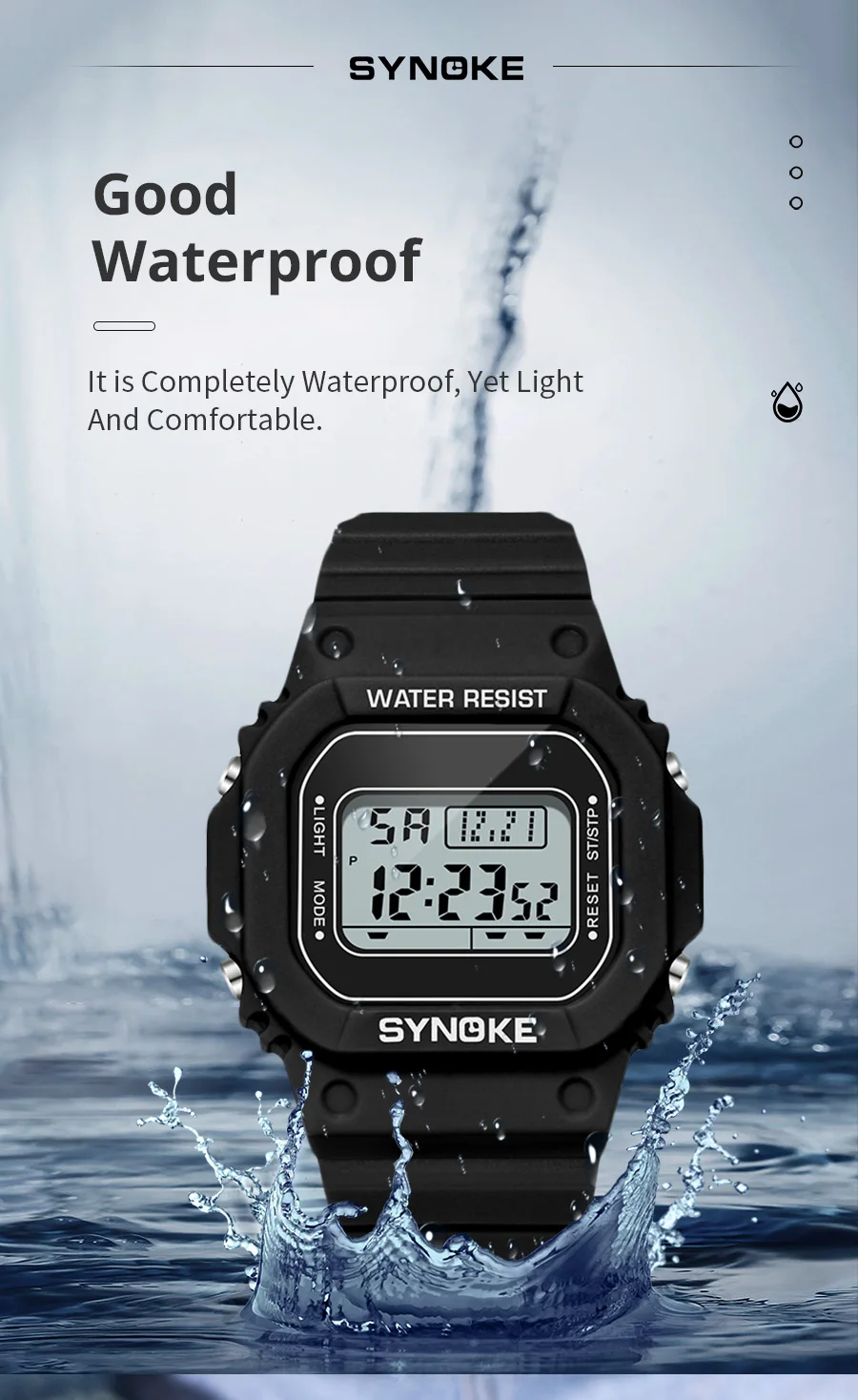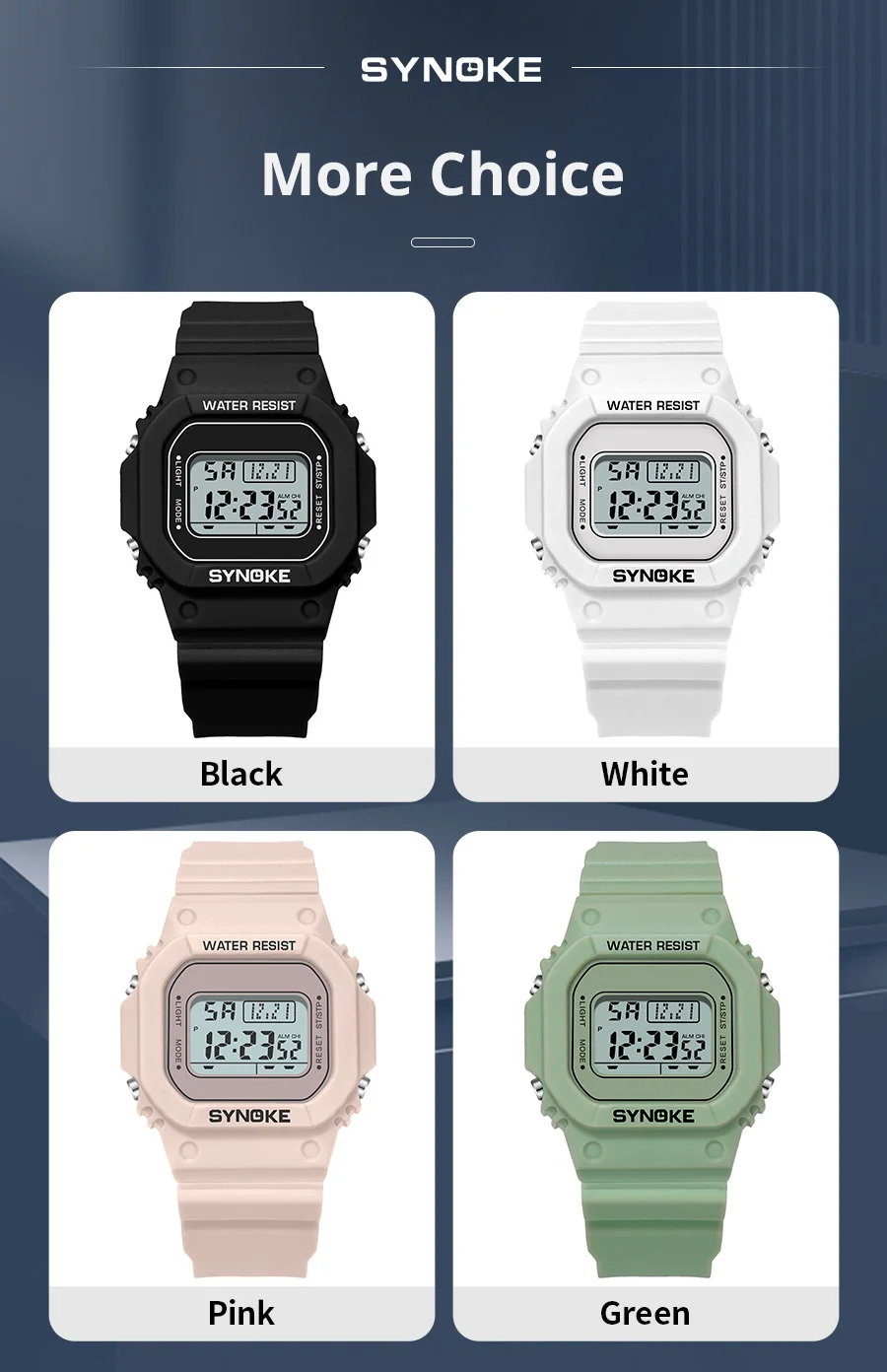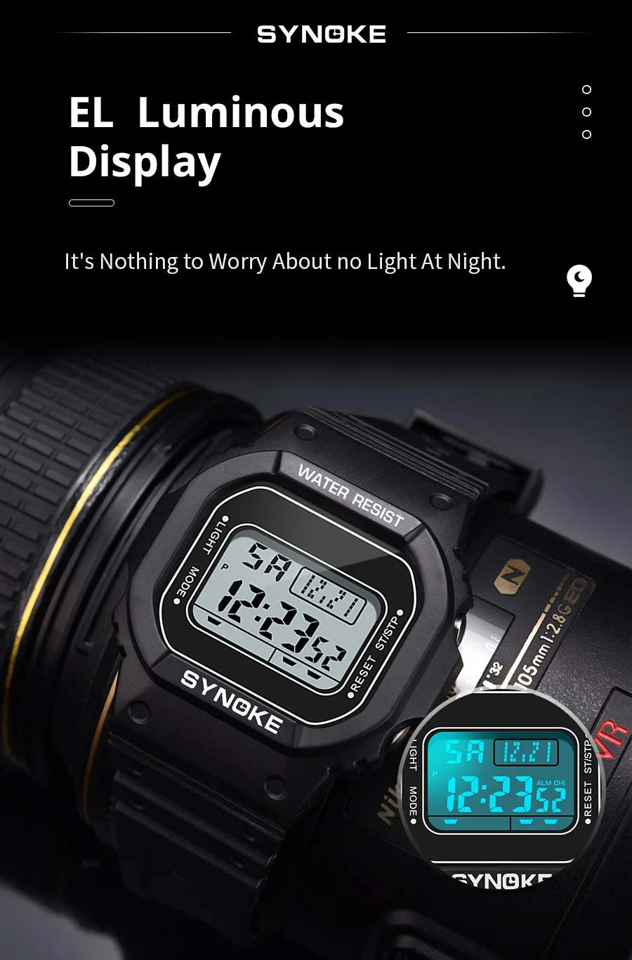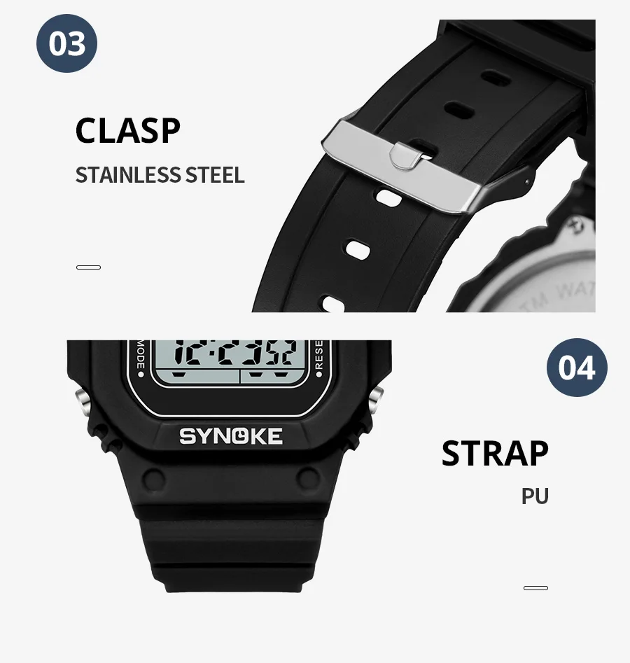 • Digital Movement :The SYNOKE watch features a digital movement, providing accurate time and date information at all times.