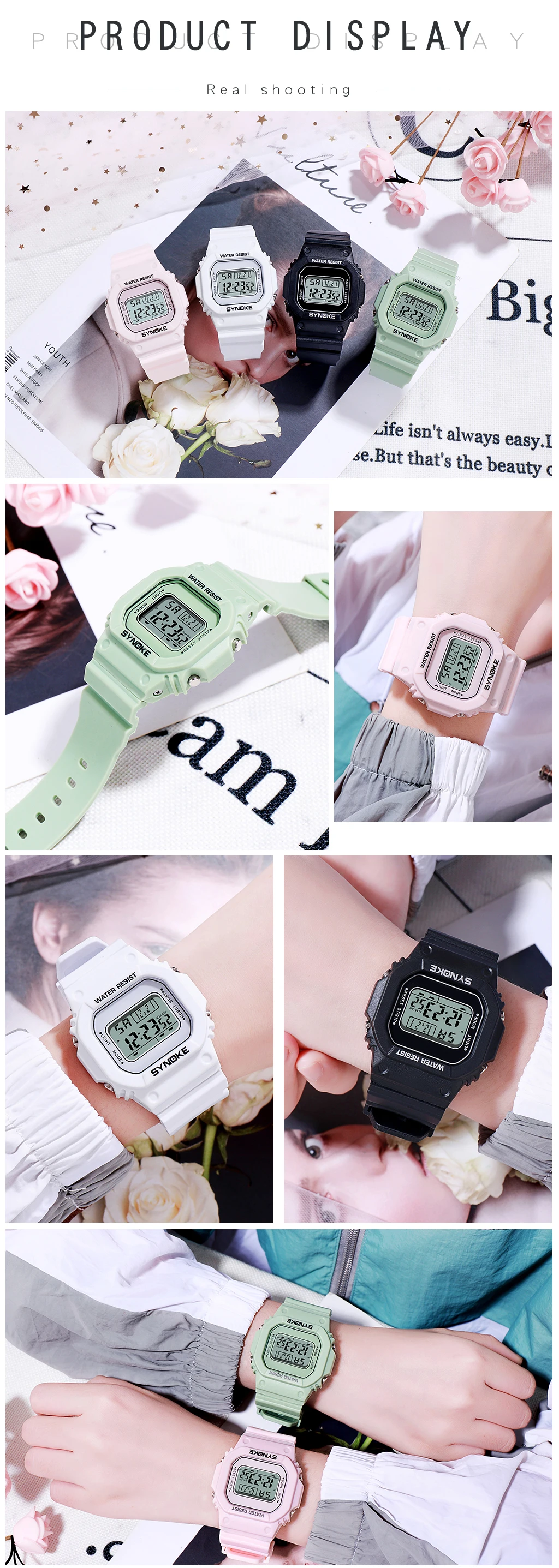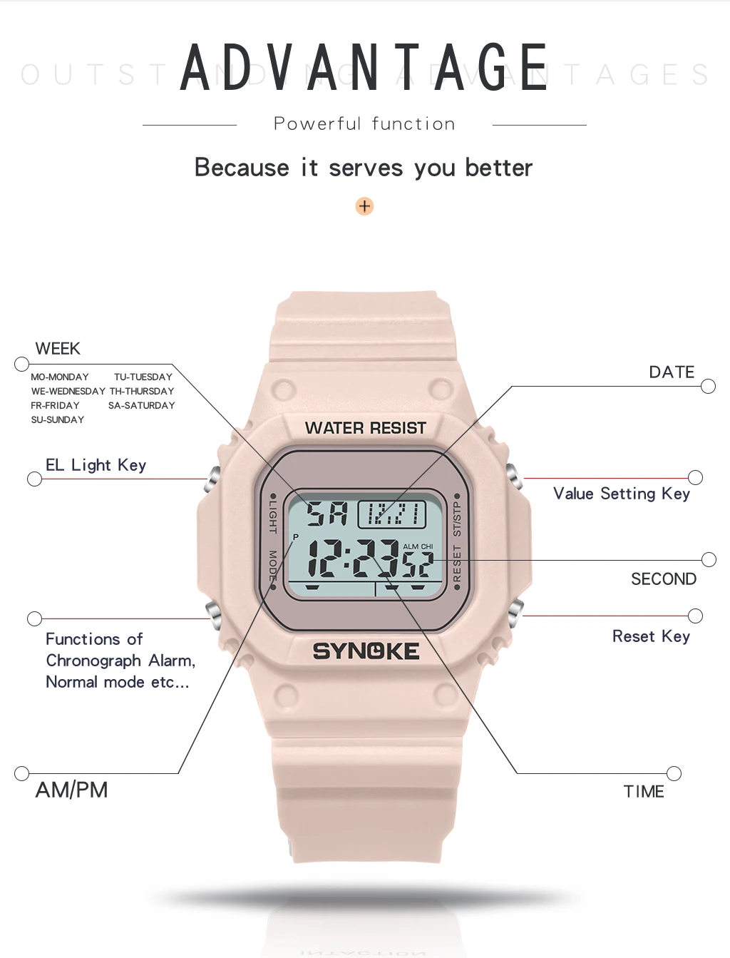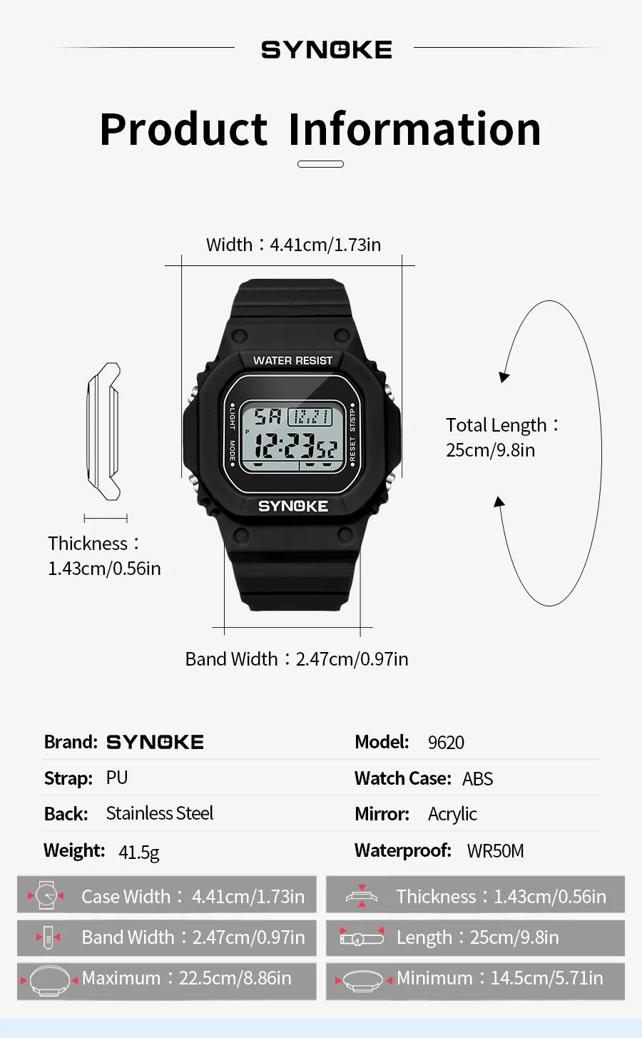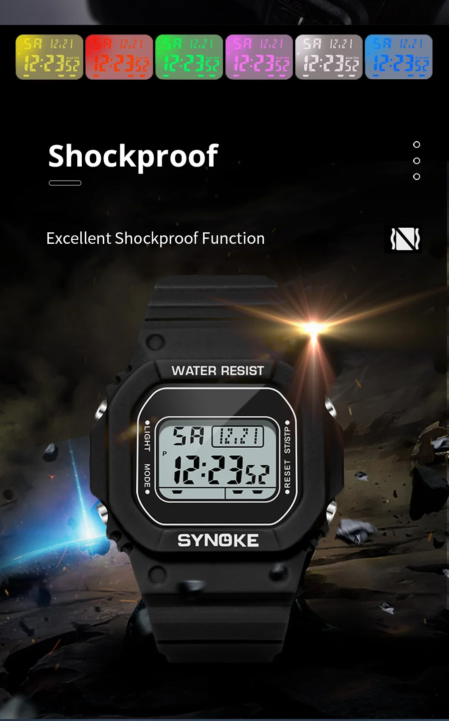 • Digital Movement :The SYNOKE watch features a digital movement, providing accurate time and date information at all times.