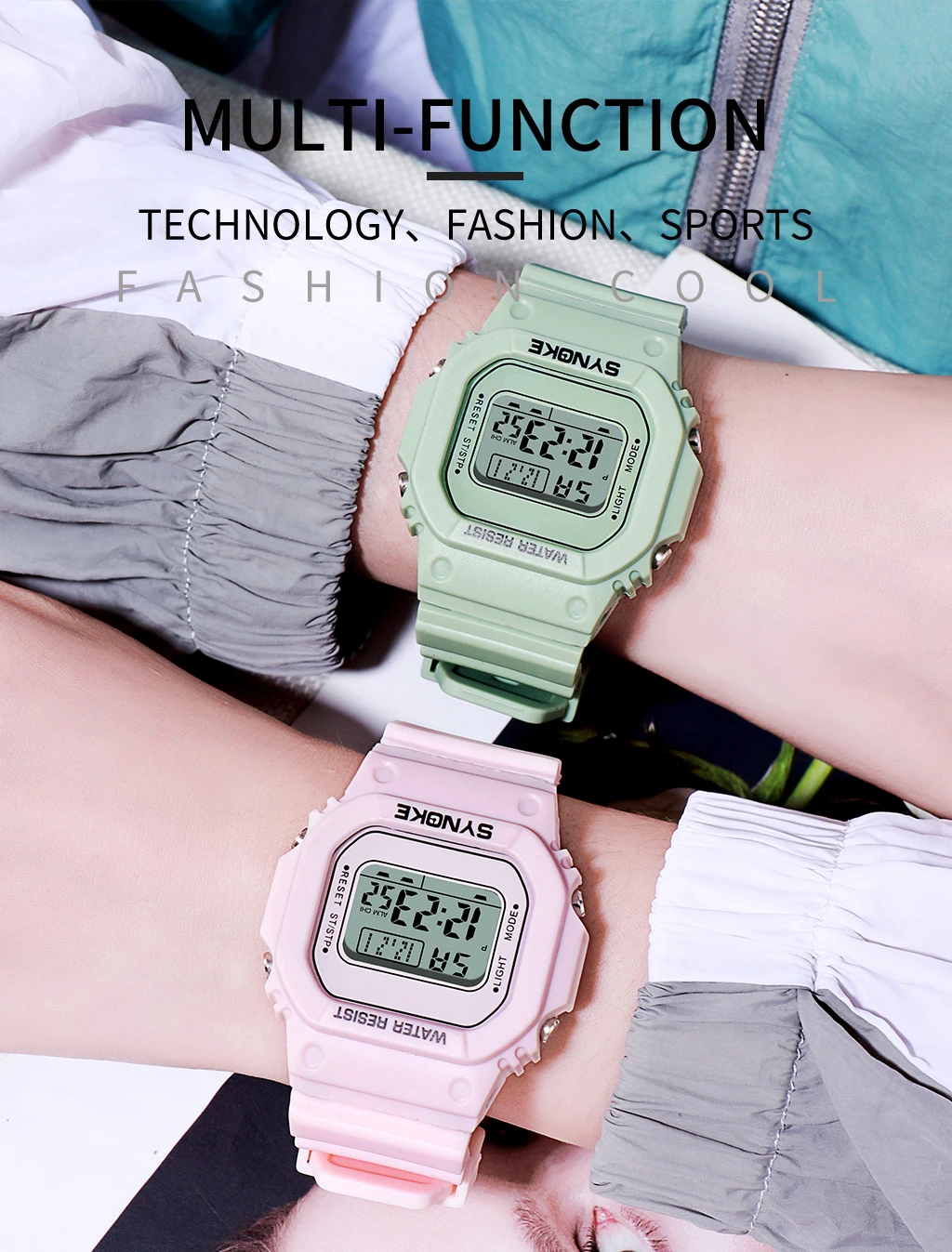SYNOKE Digital Watches Lady Sports Luminous Multifunction Waterproof Chrono Wristwatch Girls Fashion Student Watch For Men