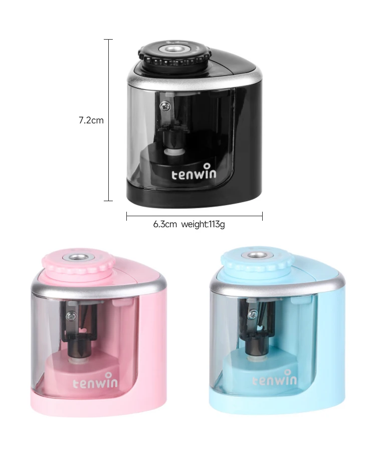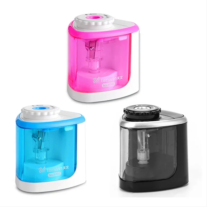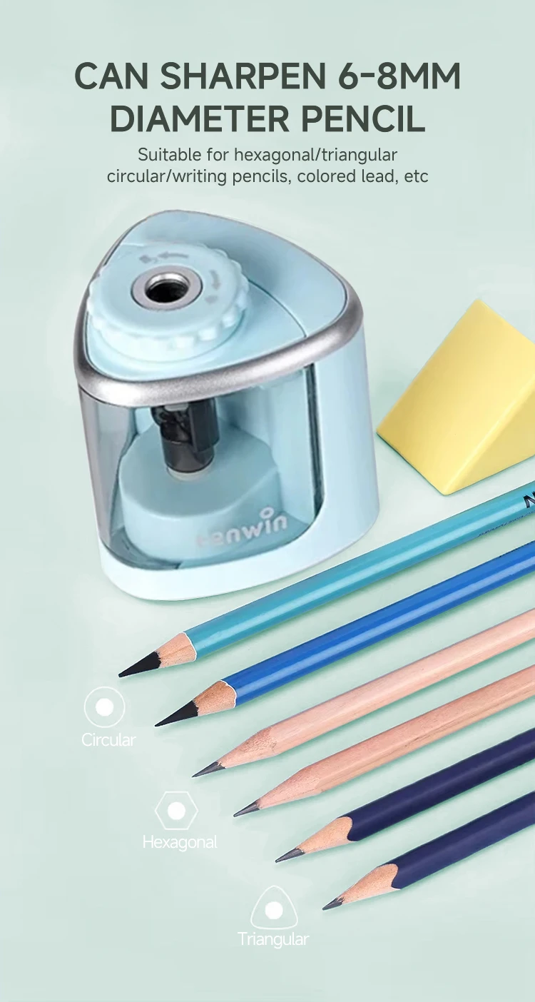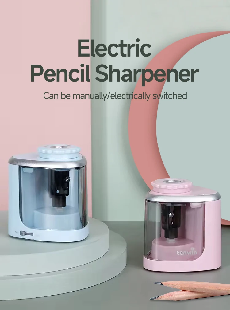 Tenwin Electric/Manual 2 in 1 Pencil Sharpener Safe Student Helical Steel Blade Sharpener Kids Adults Supplies Colored Pencils