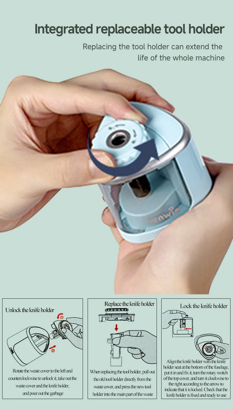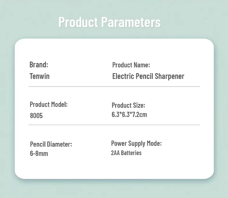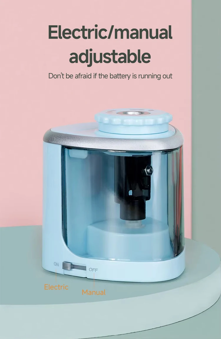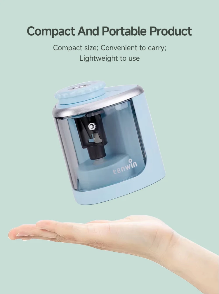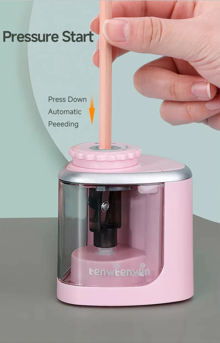 Tenwin Electric/Manual 2 in 1 Pencil Sharpener Safe Student Helical Steel Blade Sharpener Kids Adults Supplies Colored Pencils