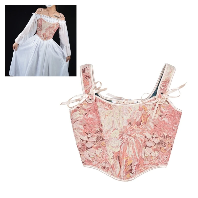 Experience the elegant of our Sleeveless Bustier Corset. Made with a delicate floral design inspiredby French oil paintings, it adds a touch of romance and sophistication to youroutfit. The adjustable back straps ensure a comfortable fit, while the corset structure provides support and enhances your naturalcurves.