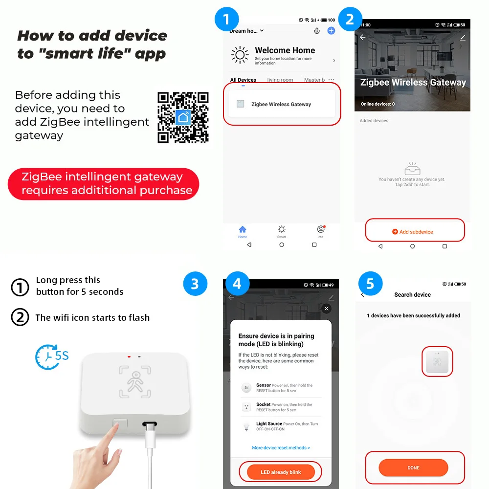 Tuya Zigbee Human Presence Detector Smart Life MmWave Radar Pir Motion Sensor with Luminance Distance Detect Monitor Breathing