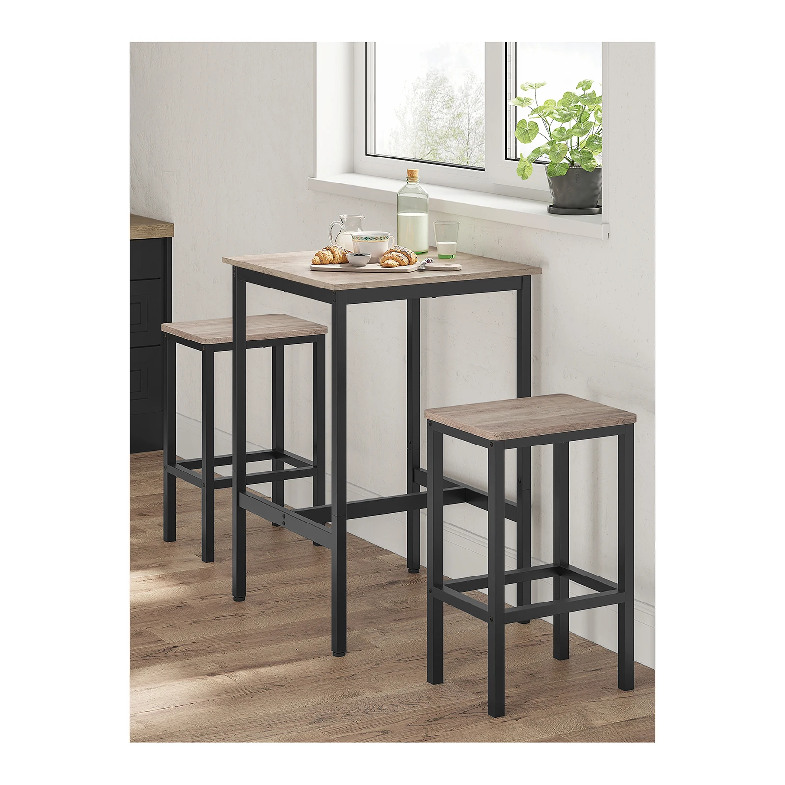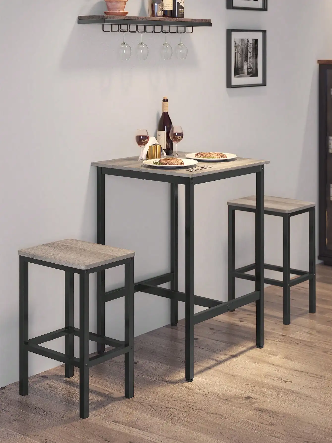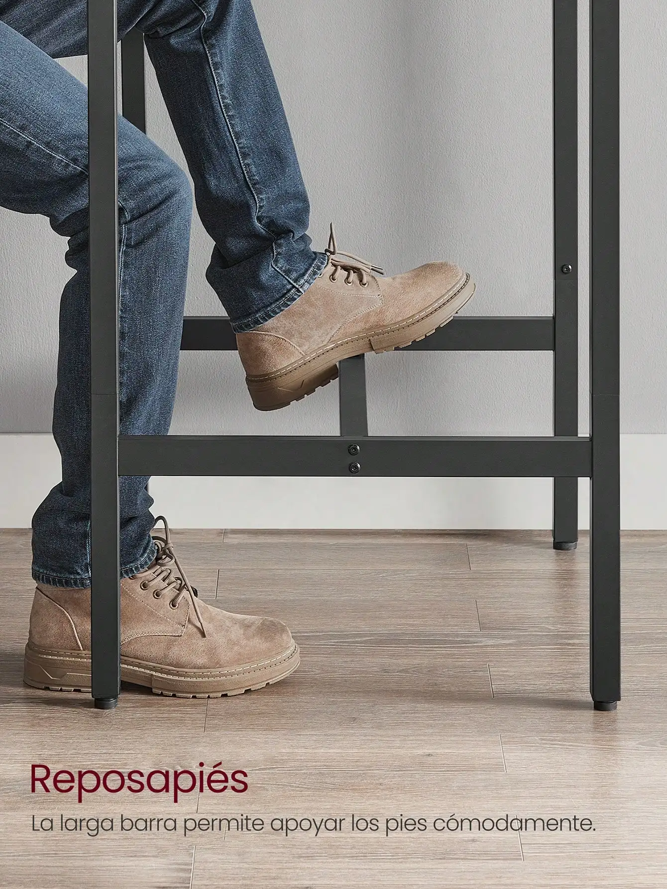 [Estilo industrial, recomendación de taburete] El estilo industrial con el diseño limpio añade un toque rústico a tu espacio; un par de taburetes de bar (no incluidos) de unos 61-66 cm de altura encajarán perfectamente debajo de la mesa