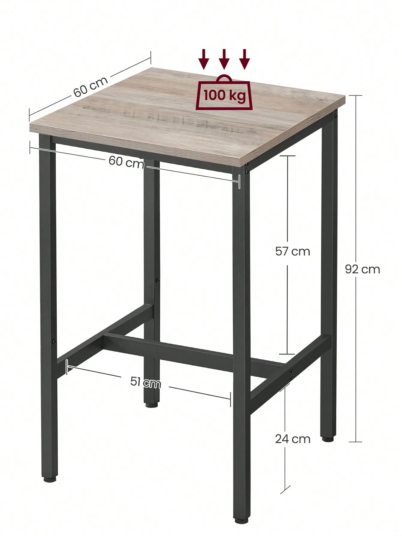 [Sólida y fuerte] Con la mezcla de tablero de aglomerado y el marco de acero durable, esta mesa de bar cuenta con un marco sólido y estable que puede soportar hasta 100 kg