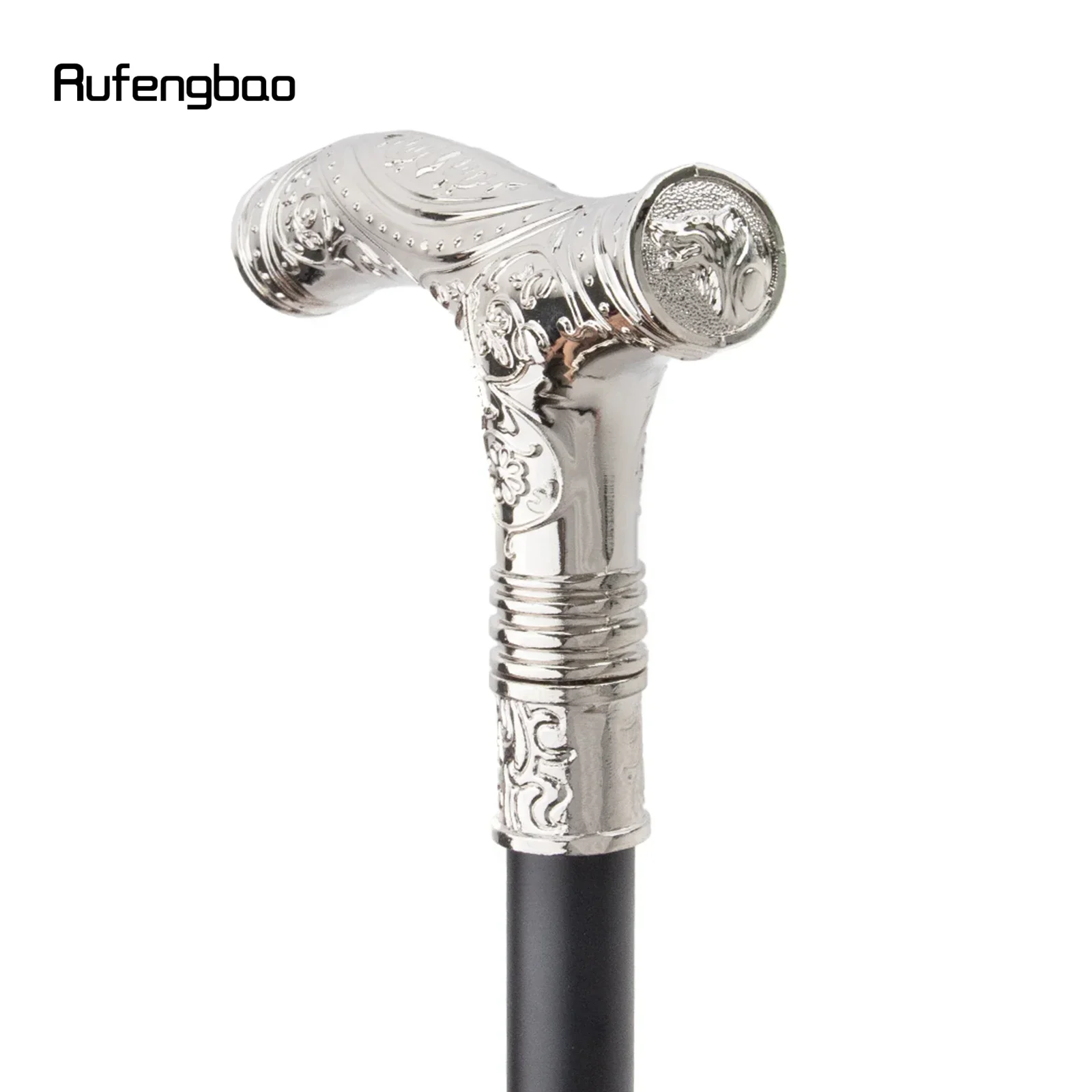 White Wolf Head Flower Walking Stick with Hidden Plate Self Defense Fashion Cane Plate Cosplay Crosier Stick 93cm