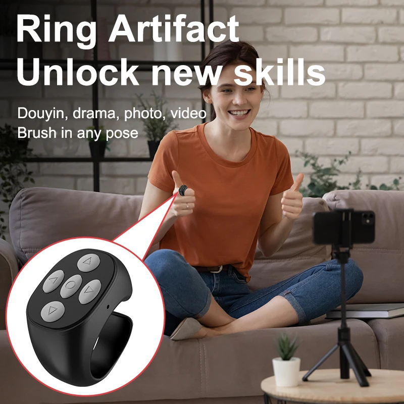 Support APP: Phone Bluetooth ring remote control supports many kinds of mainstream short video APP, beauty camera, novel APP