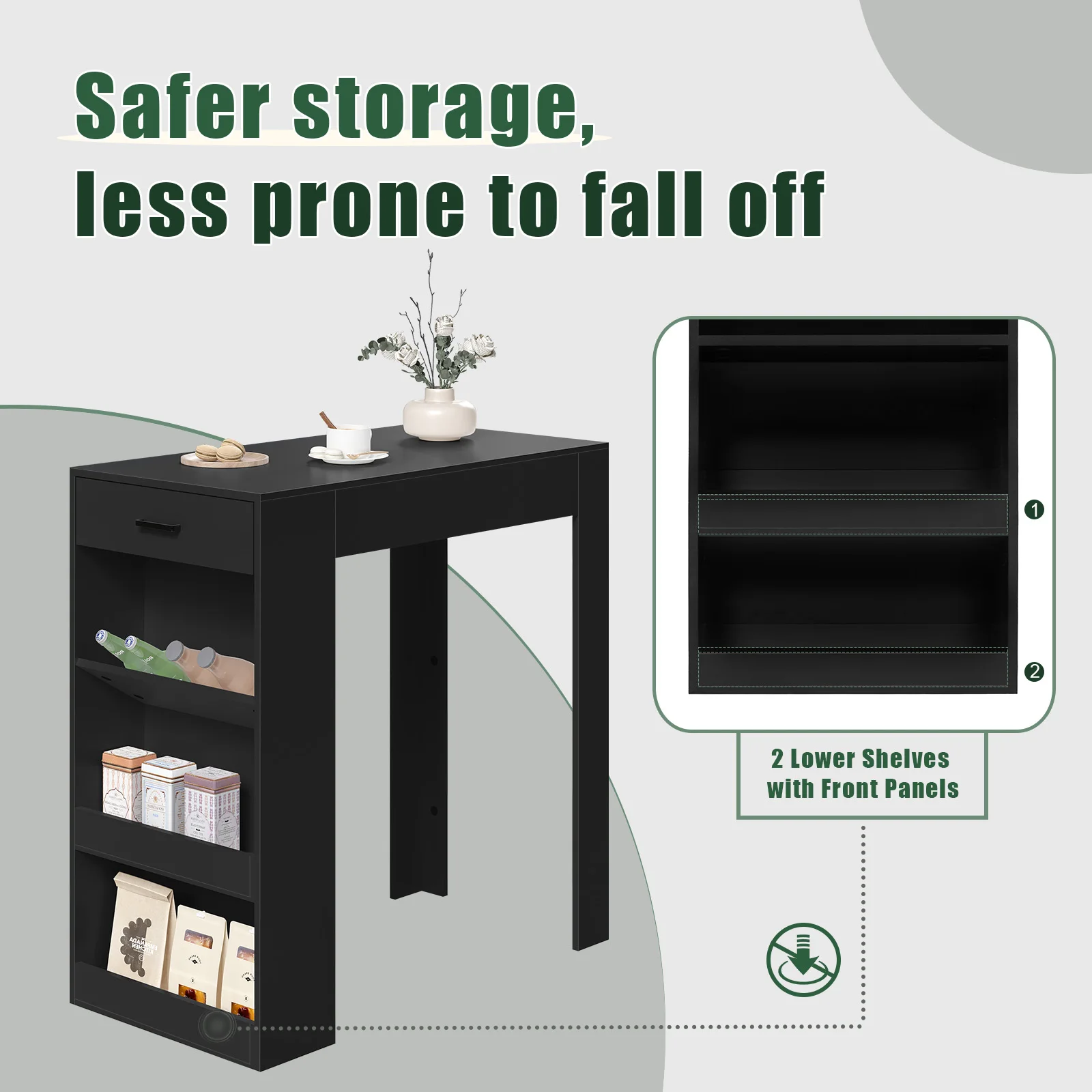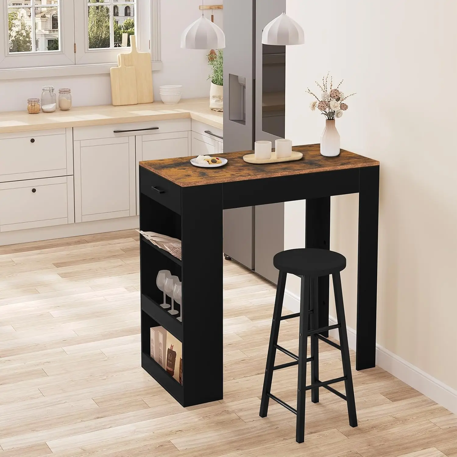 😊Modern, simple and multifunctional: thanks to its modern and simple design, the bar table with drawer fits in many living situations and can be used as a dining table, storage table, kitchen table, side table, temporary desk, etc