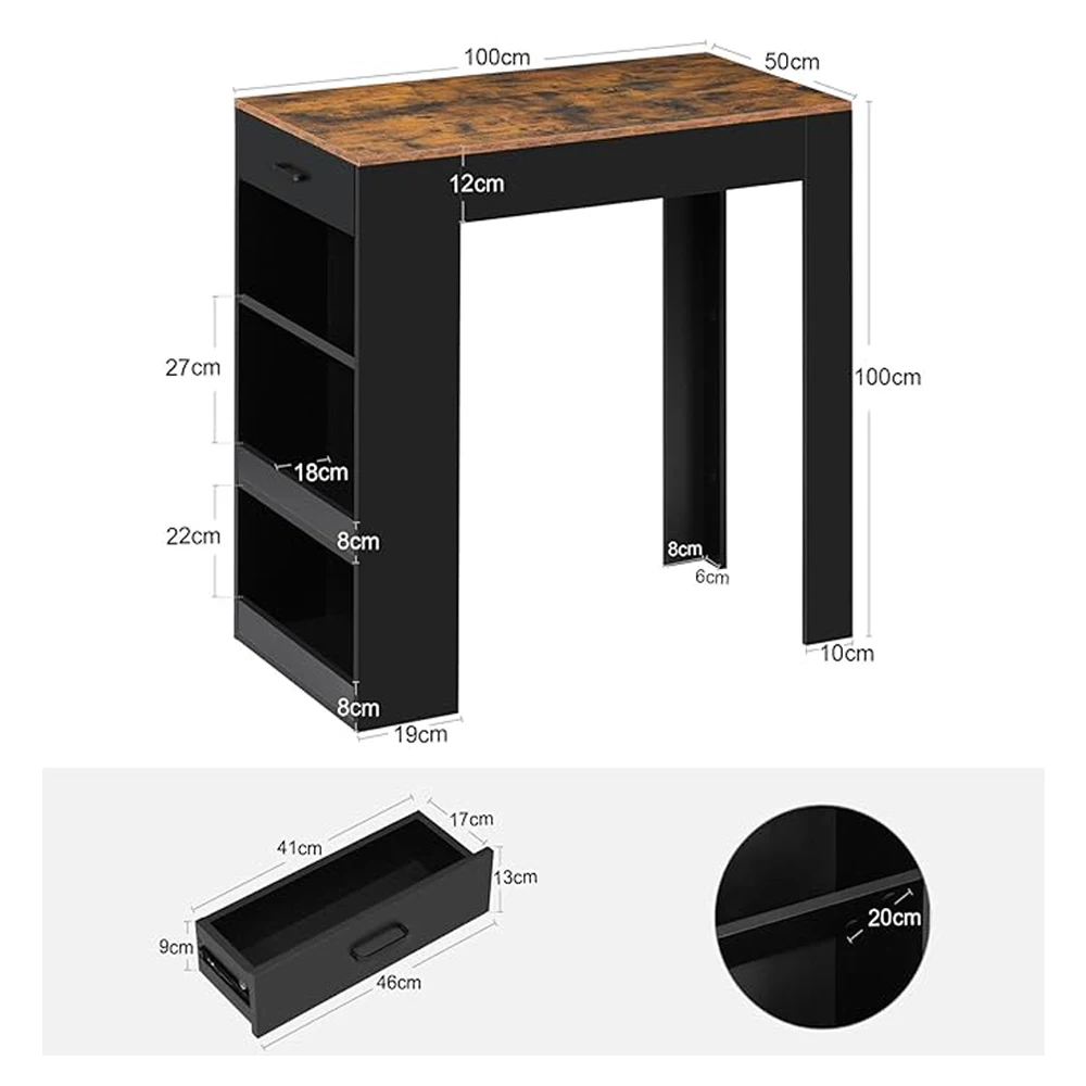😊Spacious bar table: table top: 100 x 50 cm, height: 100 cm. The rectangular bar table offers plenty of leg room and can be used with many bar stools. The wide table top is scratch and abrasion resistant, easy to clean, beautiful and practical