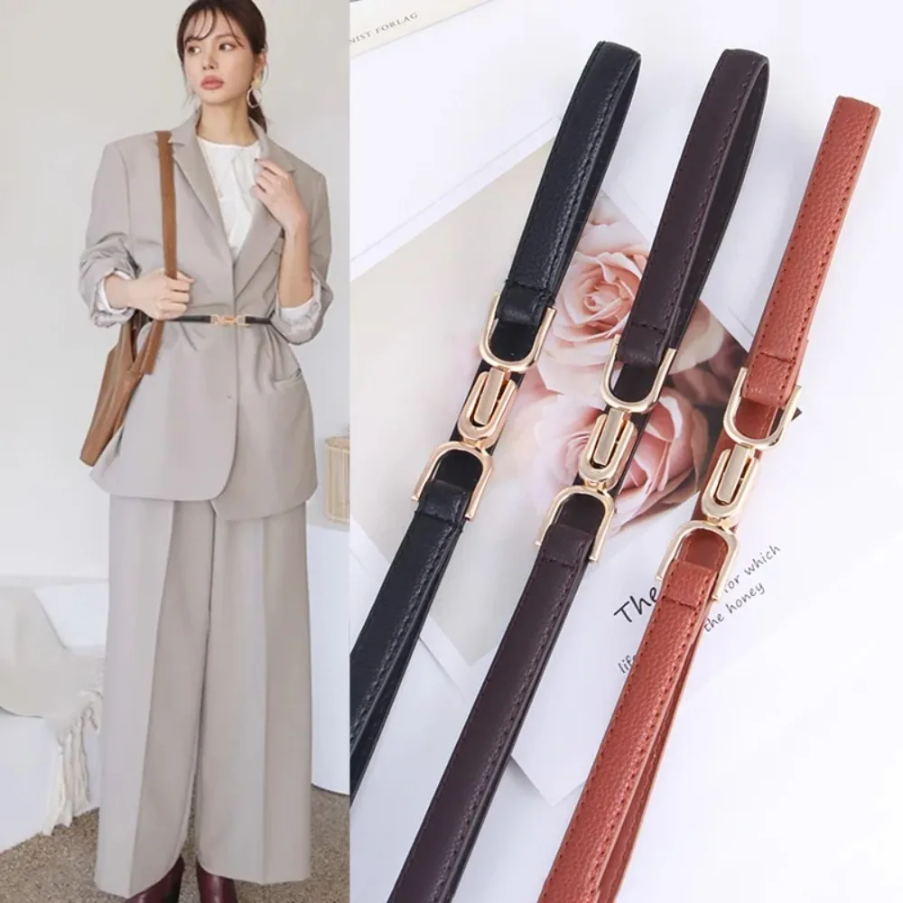 Women’s belt-style fashion and simple decorative dress with a fitted waist and versatile black thin belt