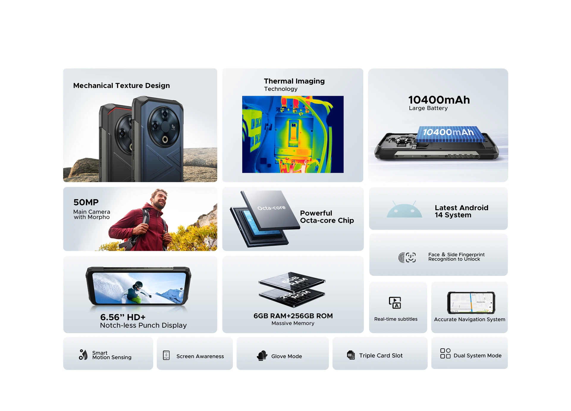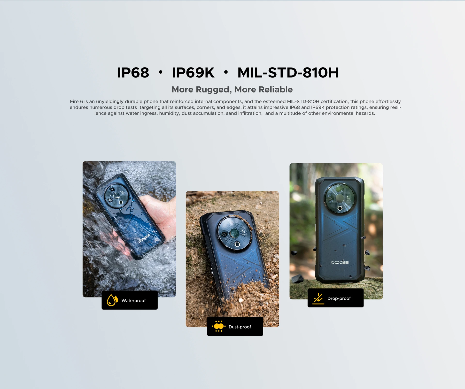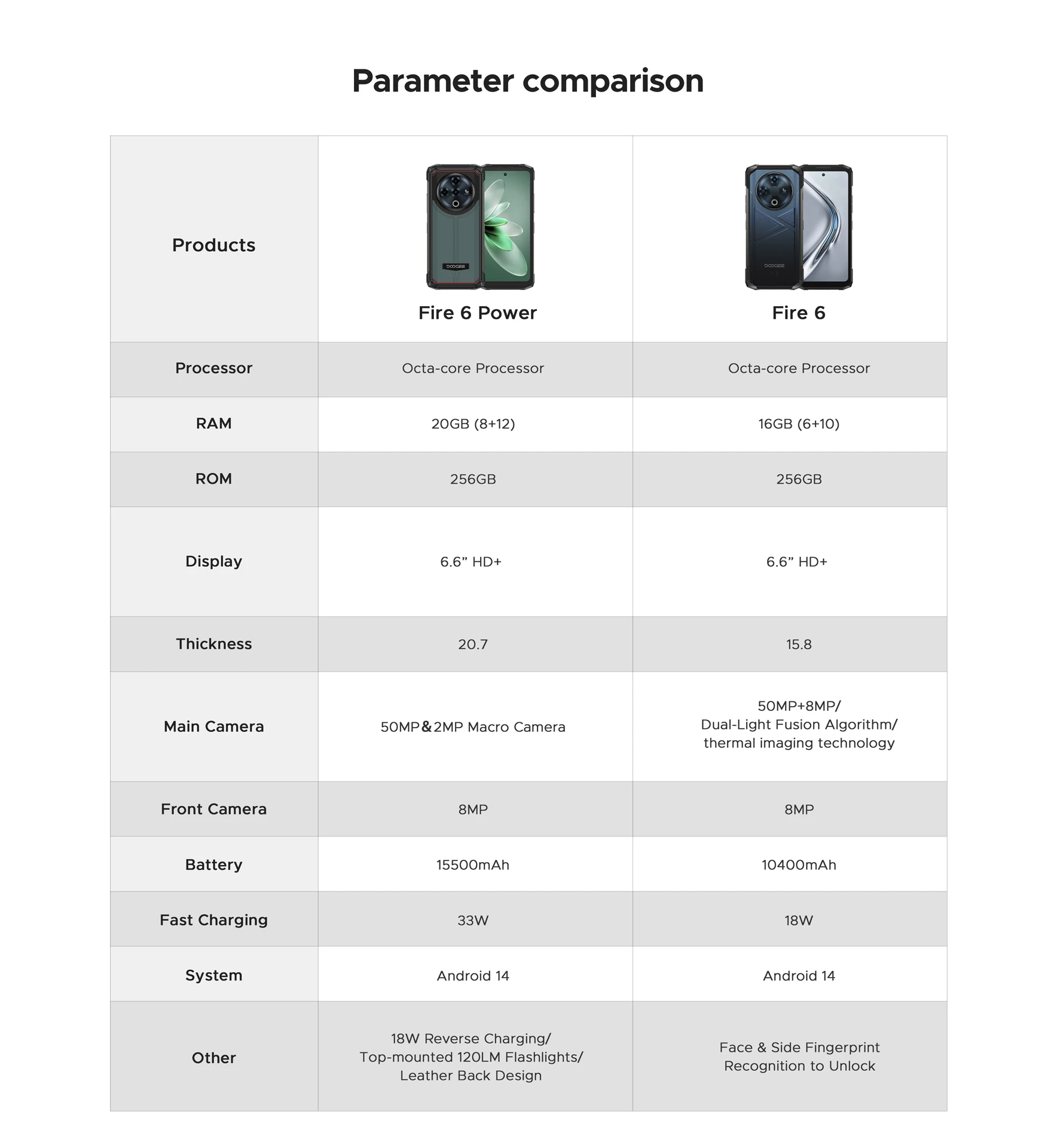 World Premiere DOOGEE Fire 6 Rugged Phone 6.56″ 90Hz Display 6GB RAM 256GB ROM 50MP AI Main Camera 10400mAh/18W Android 14