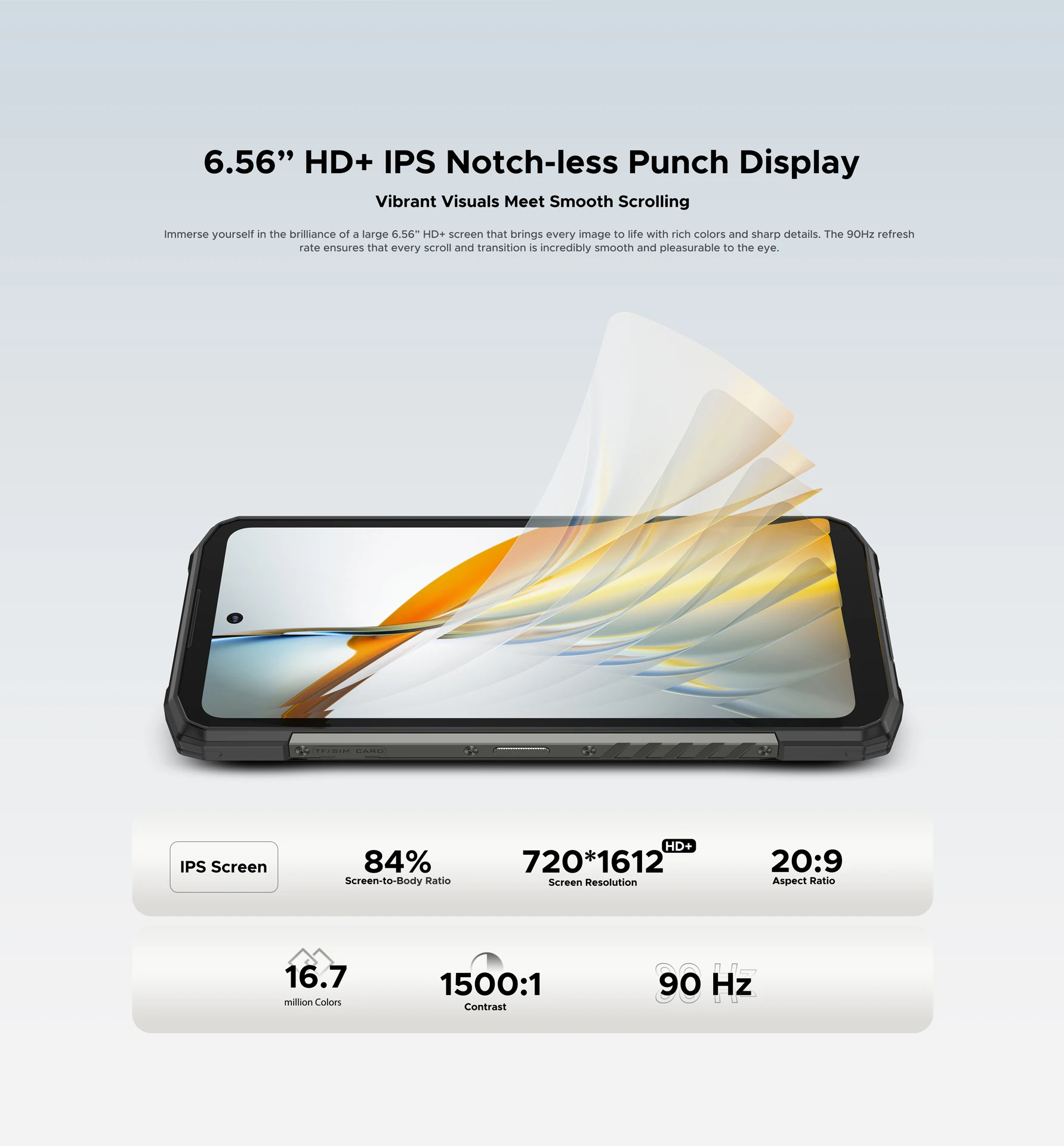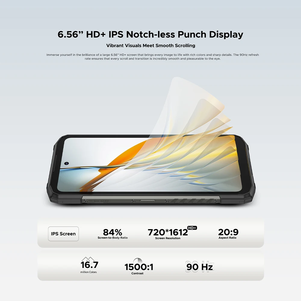 · 6.56” HD+ IPS Notch-less Punch Display / 90Hz