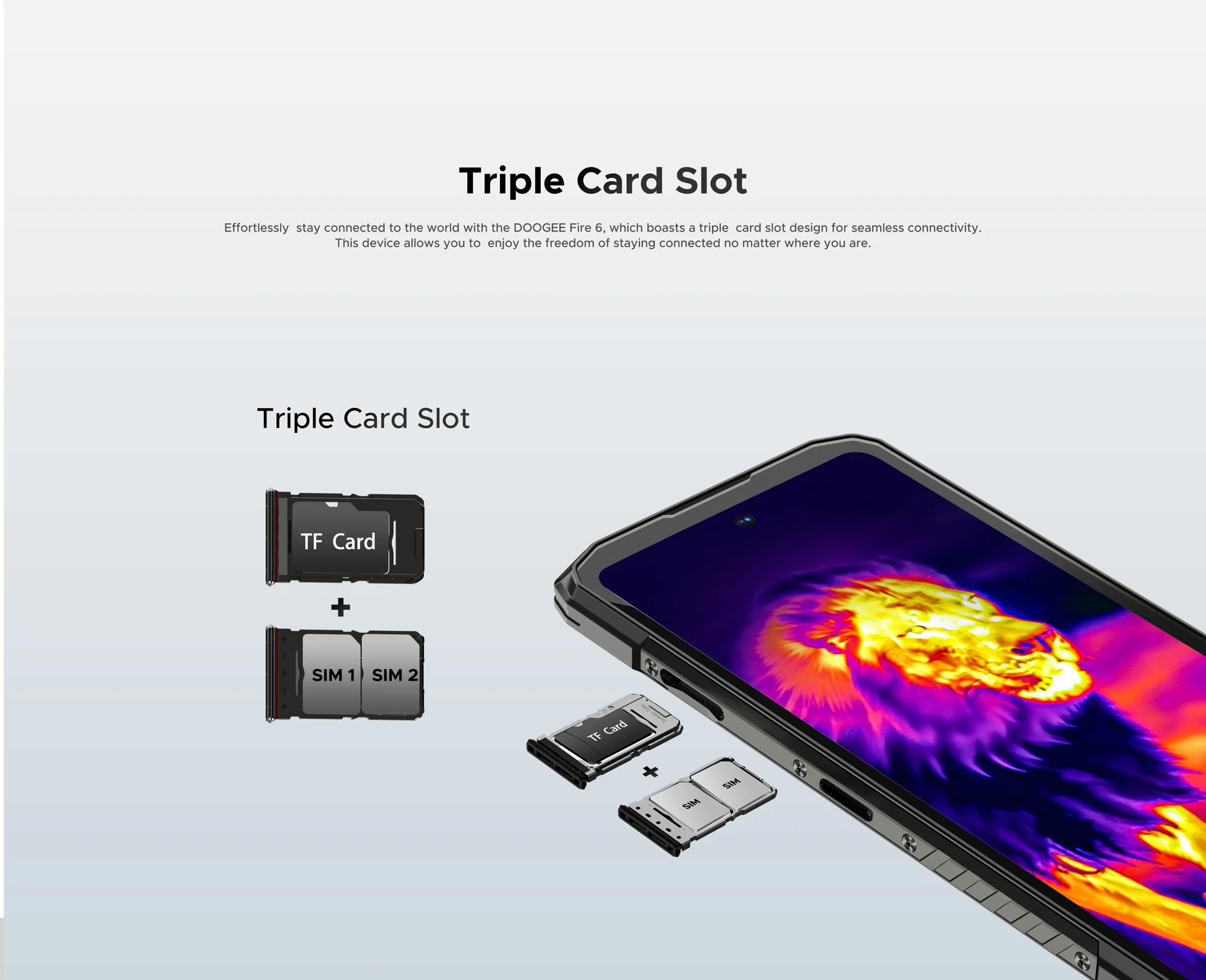 · Triple Card Slot (Support 2 SIM Cards + 1 TF Card)