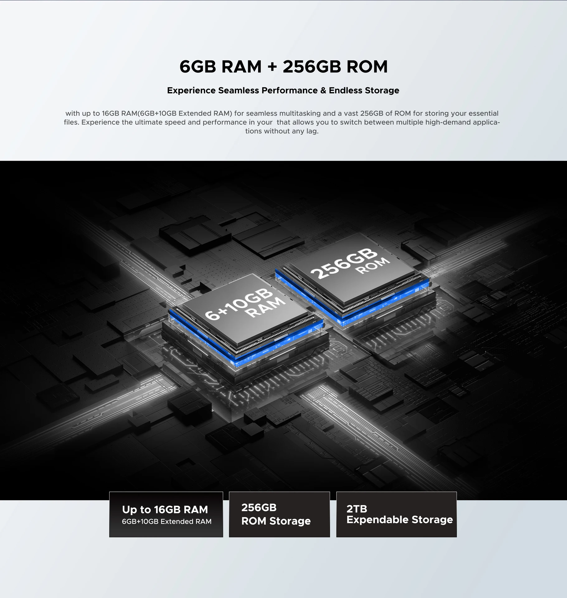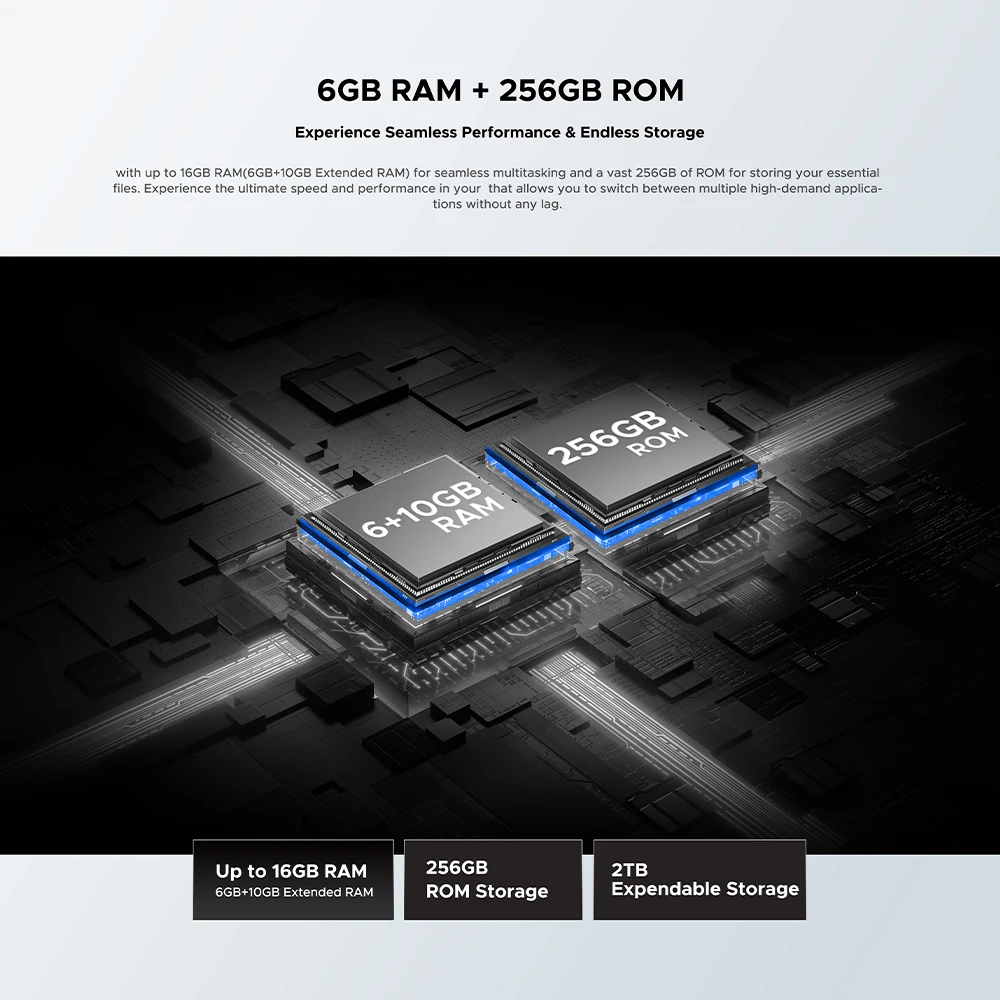 · 16GB RAM (6GB + Up to10GB Extended RAM) / DDR4X
