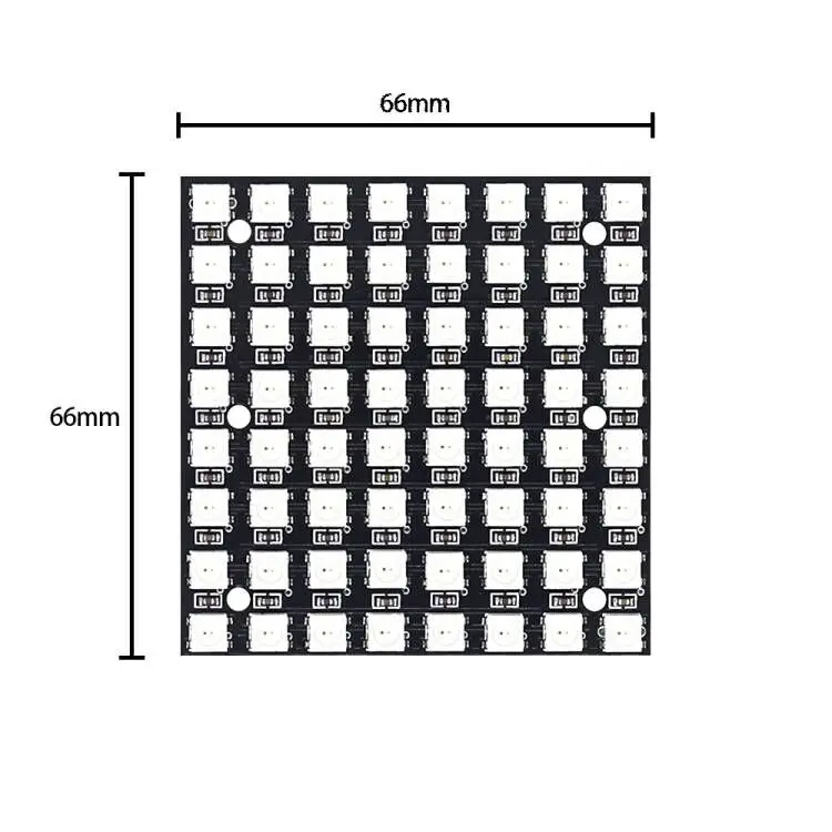 SPECIFICATIONS Brand Name: HZWDONE Choice: yes Hign-concerned Chemical: None Model Number: WS2812 LED Origin: Mainland China is_customized: Yes DC voltage: 5 v Joggle: IO 8 * 8 = 64 RGB